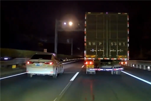 网传视频可以看到,此事发生在昨日晚间,视频车行驶在某单向双车道高速路上,很快就追上了前方的两台车。