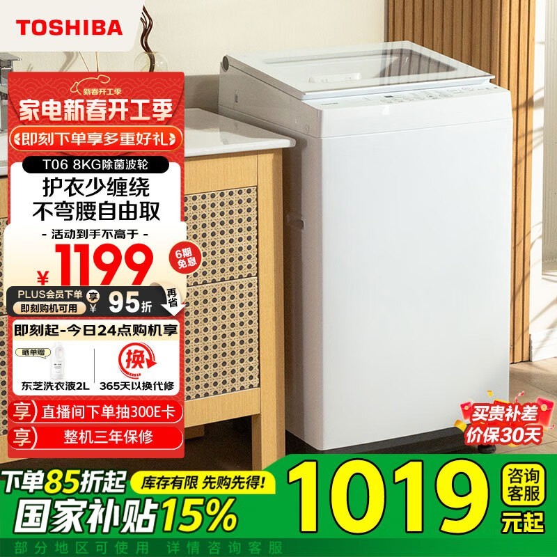 东芝DB-8T06:大容量全自动洗衣机,学生/小家庭的理想洗衣伙伴,健康除菌,便捷耐用,仅1199元起!