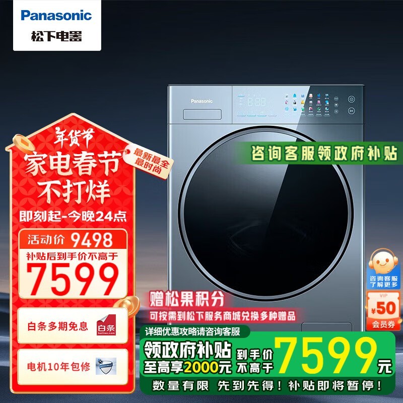 松下智能XQG120-V290洗衣机:大容量、全自动清洁,健康除菌家居新升级