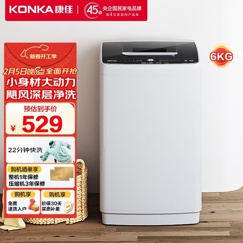 康佳KB60X201:超薄全自动波轮洗衣机,524元出租屋神器,小巧智能省空间耐用