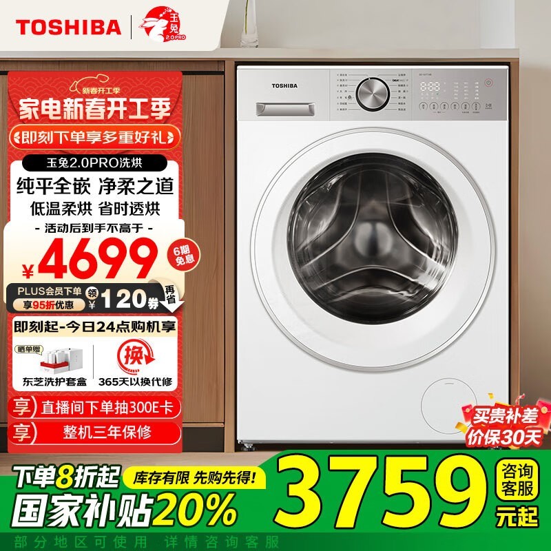 东芝DD-107T18B滚筒洗衣机:1.1洗净比,大容量高效洗烘,4699元起享受智能生活新体验