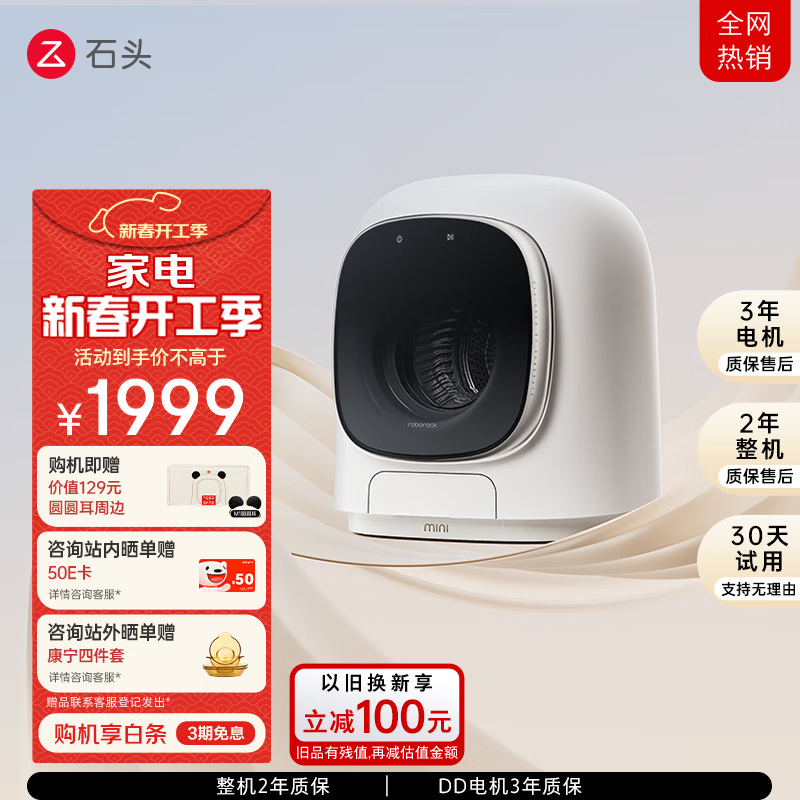 石头(M1 Pure):1KG大容量迷你洗烘一体机,夜间托管除菌,仅售1999元的洗衣健康守护者