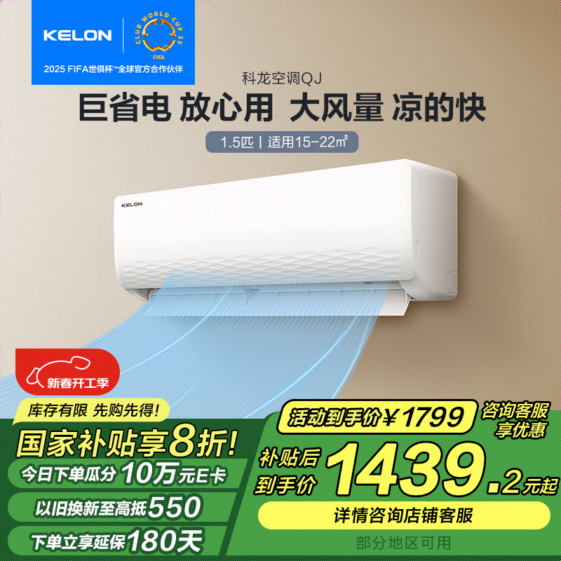科龙睡眠空调大风力一级能效壁挂机智能调温节能环保
