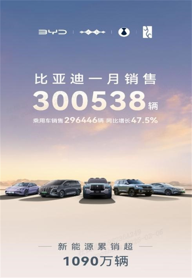 近日,比亚迪公布的 1 月销量数据成为了汽车行业热议的焦点,比亚迪凭借 300538 辆的销量成绩,进一步巩固了其在新能源汽车市场的统治力,再次稳坐中国品牌汽车市场销冠宝座。