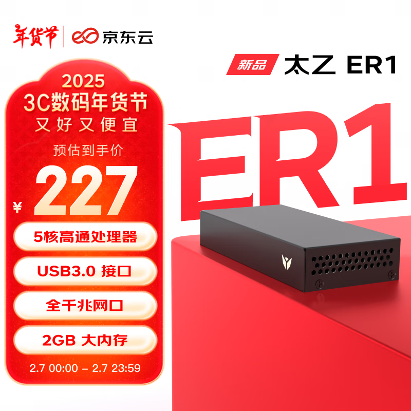 京东云无线宝ER1太乙有线路由千兆路由器到手价207元