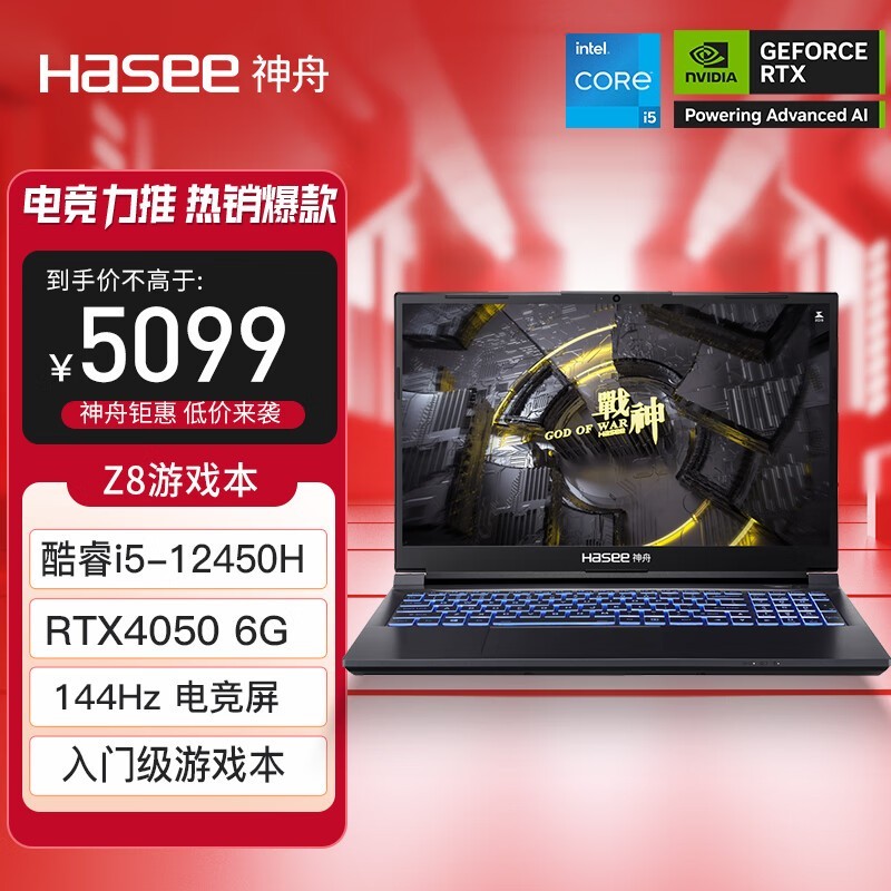 神舟战神Z8游戏本 12代i5+RTX4050到手价4058.81