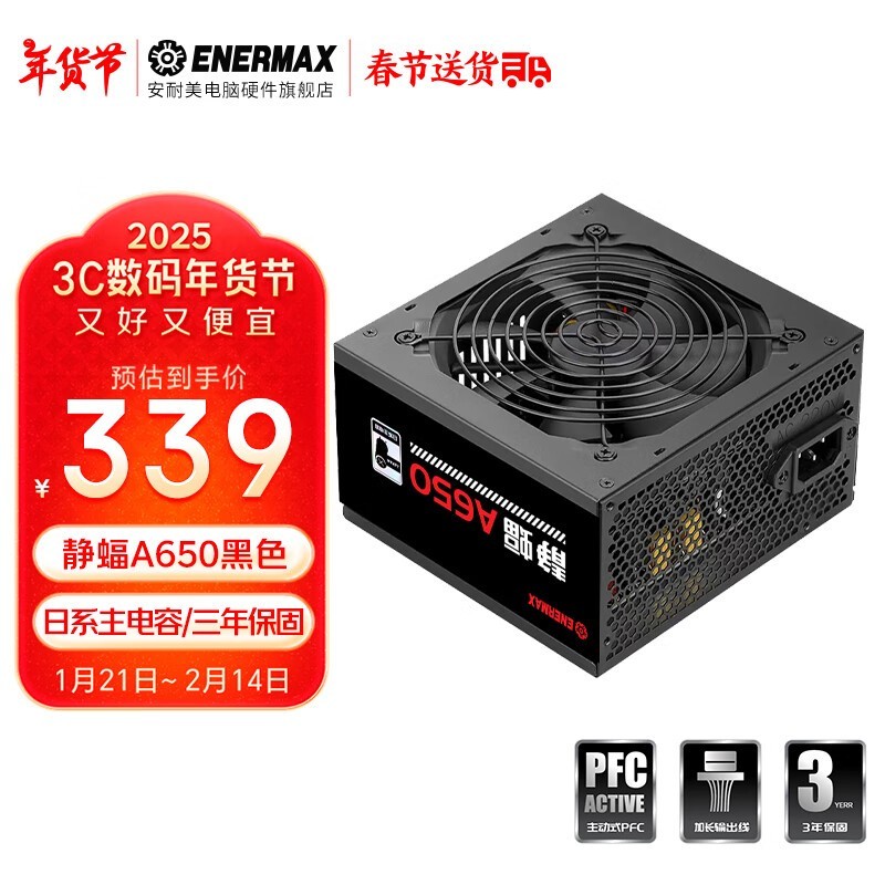 安耐美静蝠A550W:主动PFC+日系电容,339元高效稳定台式电脑电源推荐