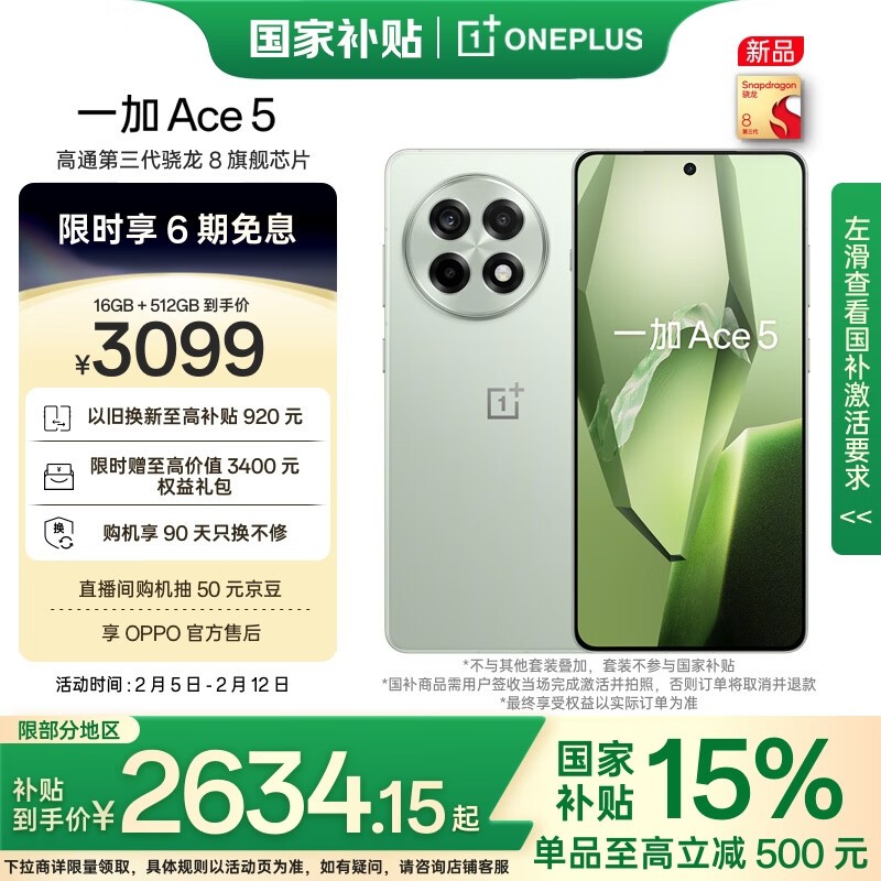 一加ACE 5智能手机16GB+512GB配置仅售2634元
