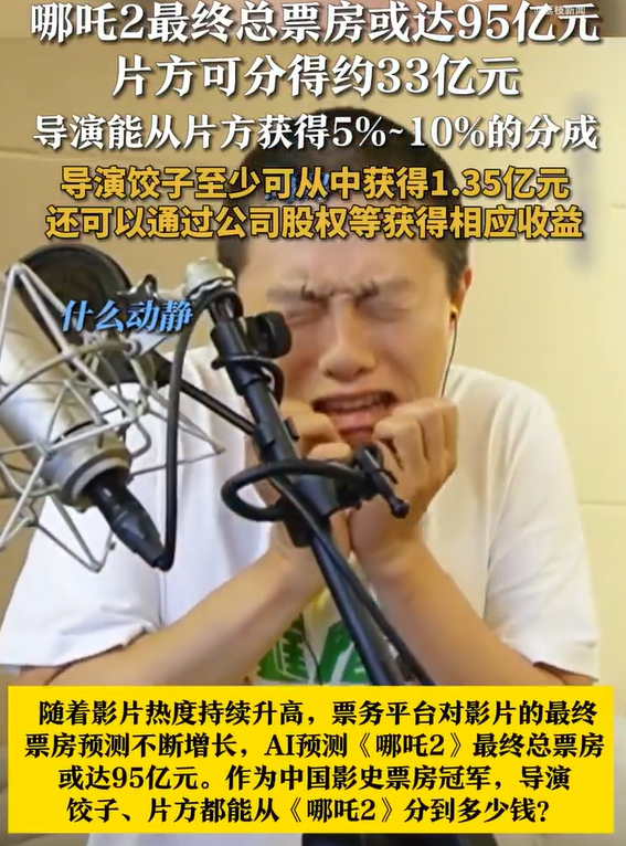 随着影片热度持续升高,票务平台对影片的最终票房预测不断增长,AI预测《哪吒2》最终总票房或达95亿元。作为中国影史票房冠军,导演饺子、片方都能从《哪吒2》分到多少钱?