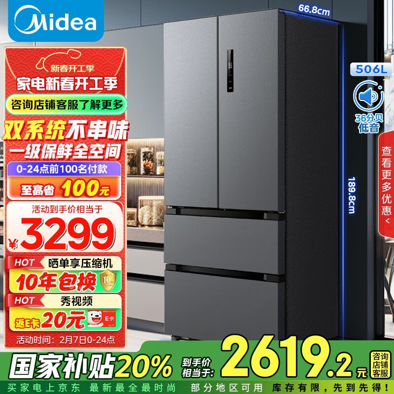 美的MR-532WFPZE多门冰箱优惠力度大 到手价2540元