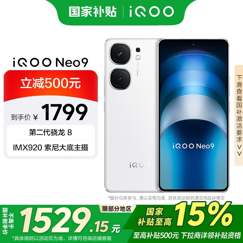 iQOO Neo9 5G手机 享受15%国家补贴,限时优惠!