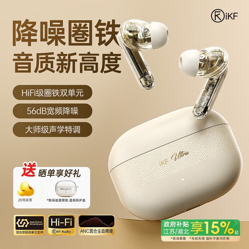 iKF Ultra 入耳式真无线圈铁主动降噪蓝牙耳机 330元 包邮