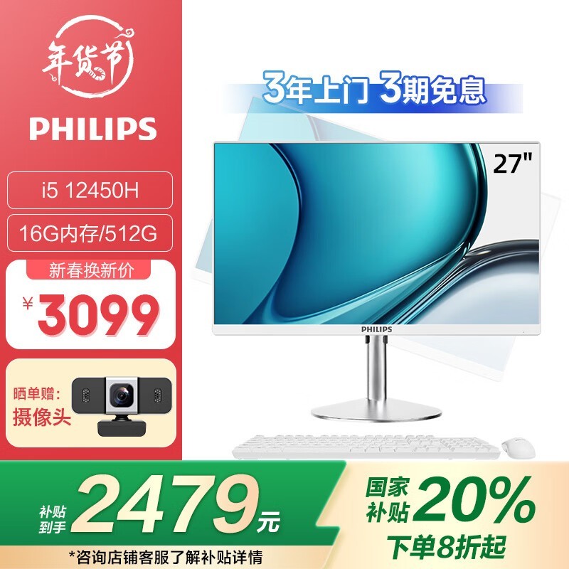 飞利浦27英寸一体机电脑特价秒杀抢购中 限时立减620元