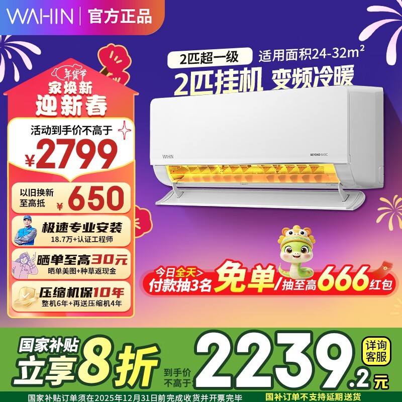 华凌KFR-50GW/N8HL1新一级能效壁挂式空调2匹仅售2239元节能又环保!