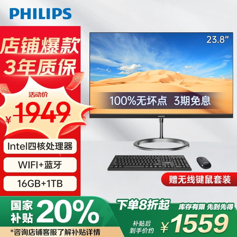 飞利浦一体机电脑到手价1559元 限时优惠快来抢购!