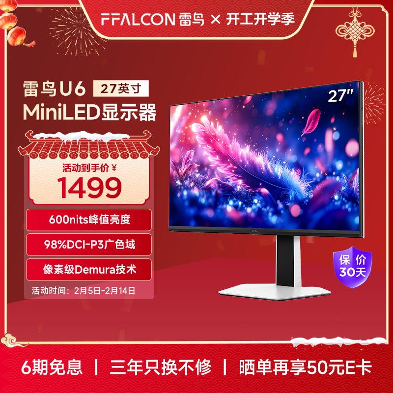 雷鸟U6 27英寸4K显示屏仅1449元!