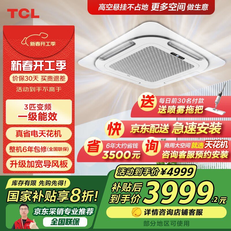 TCL 3匹天花机吸顶空调4999入手 一级能效节能省电