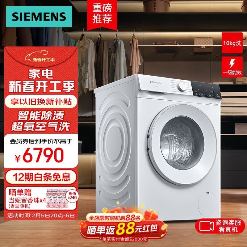 西门子大容量智能滚筒洗衣机:10公斤高效除渍,自动化便捷,享受健康清洁与经济优惠