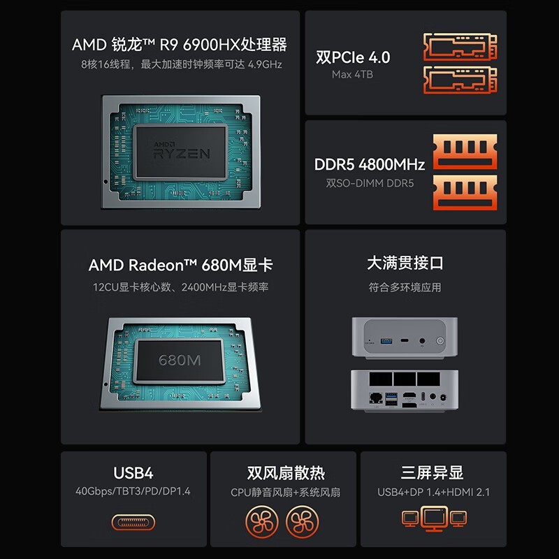 零刻 Beelink SER6 迷你主机搭载 R9-6900HX 处理器仅售2753元