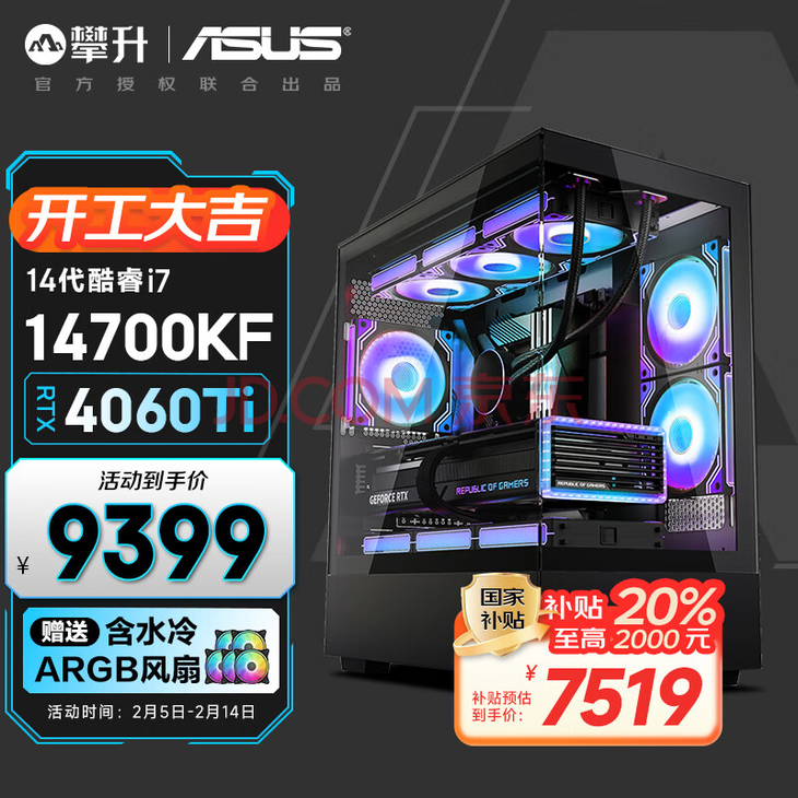 目前攀升战神RS售价9399元,叠加国补至高优惠2000元,是一款非常超值的高性能游戏主机。