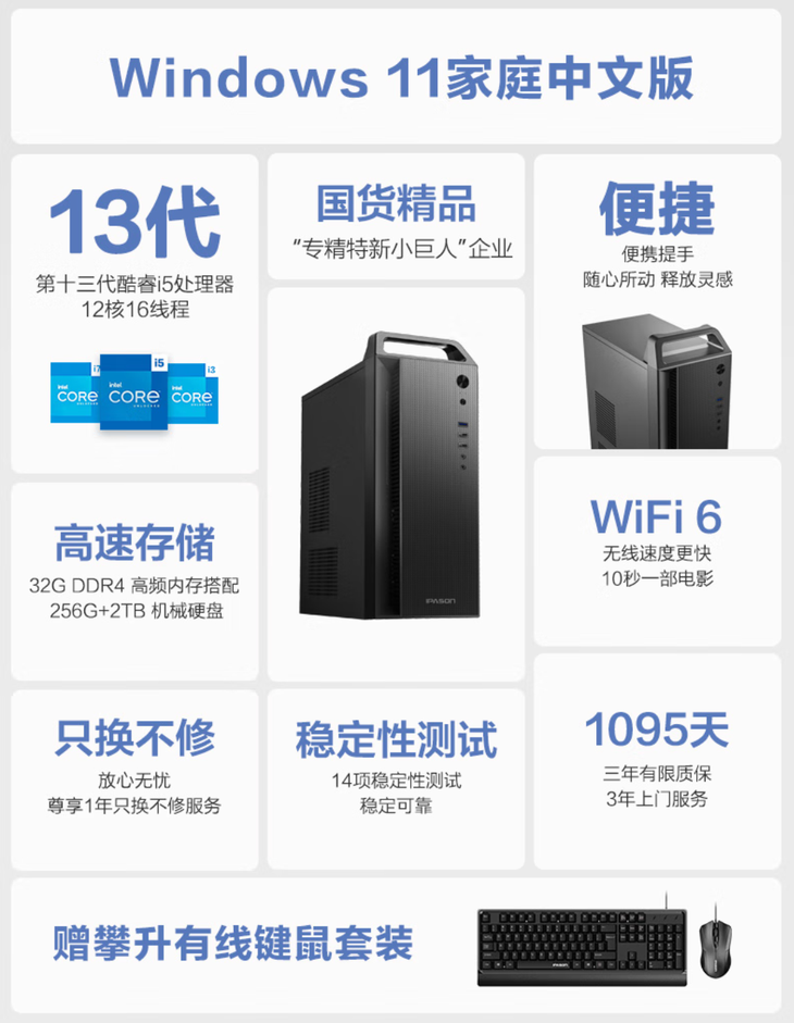 攀升商睿 2Pro 适用于多种办公场景,目前售价3699元,参与国补后价格低至2959元,是非常超值的办公台式机。