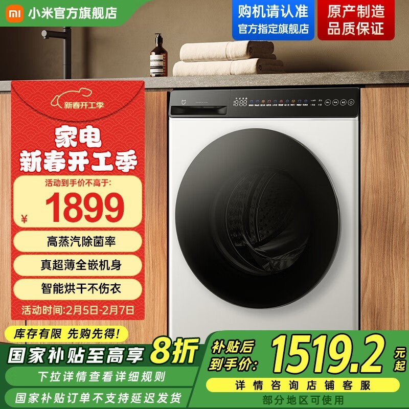 小米米家10公斤超薄除螨全自动洗衣机:高效智能,20%补贴后仅1899元