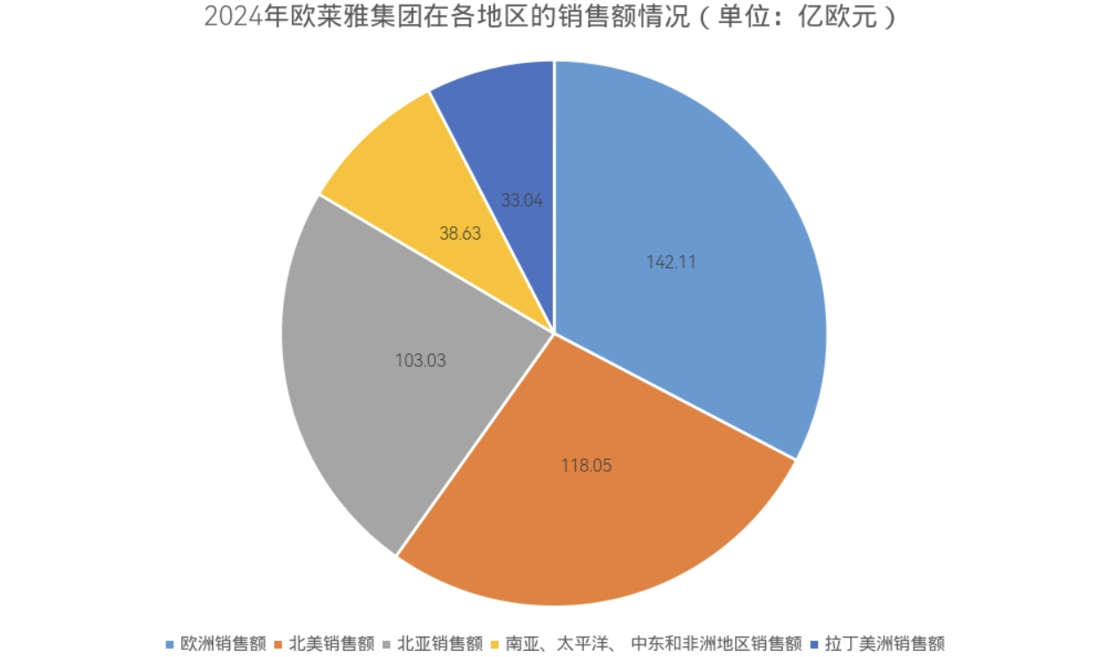 实际上,自2023年北亚从欧莱雅集团的第二大市场跌为第三大市场后,北亚市场与现第二大市场北美市场的销售额差距越来越大,由2023年的4.84亿欧元增至2024年的15.02亿欧元。