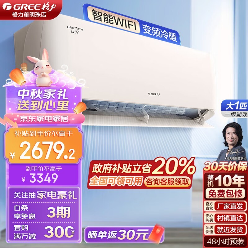格力 GREE 云霓 变频冷暖空调仅售2799元!