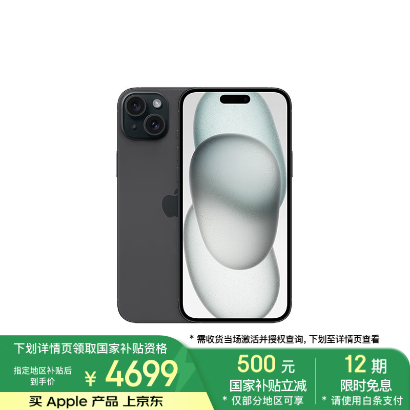 iPhone 15 Plus 5G手机 128GB 黑色 到手价4669元!