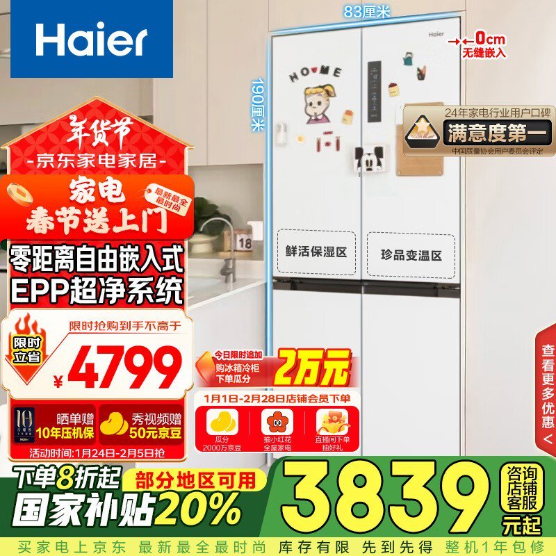 海尔BCD-500WGHTD49W9U1冰箱2961元入手 海尔家用电器热门产品