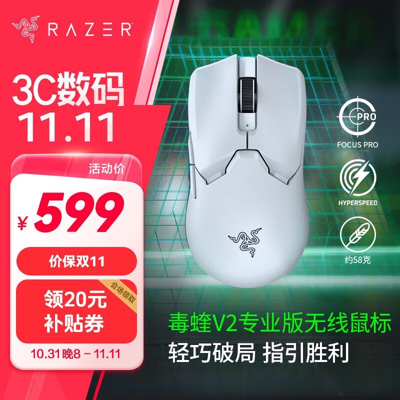 雷蛇毒蝰V2 Pro专业版无线鼠标仅589元!超值推荐