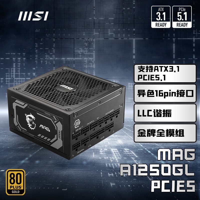 微星MAG A1250GL:金牌PCIE5电源,智能温控+强大兼容性,打造顶级游戏与专业平台的稳定心脏