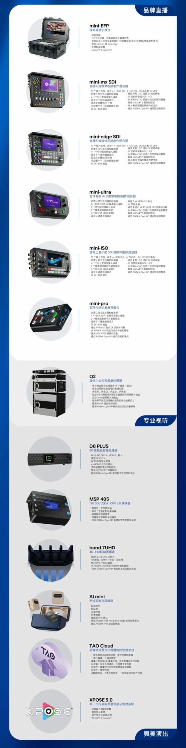 广电与 ProAV (专业视听)的融合:接口全面,不仅支持传统模拟和数字输入输出接口以及系统集成领域网络编解码技术,实现广电信号进入专业视听(ProAV)领域,还为显示器、录制机等老旧设备利旧提供可能。
