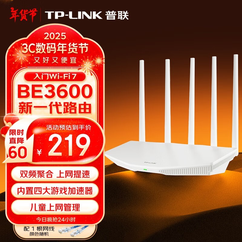 TP-LINK BE3600 7DR3610 双频3600M 家用千兆Mesh无线路由器仅售177元