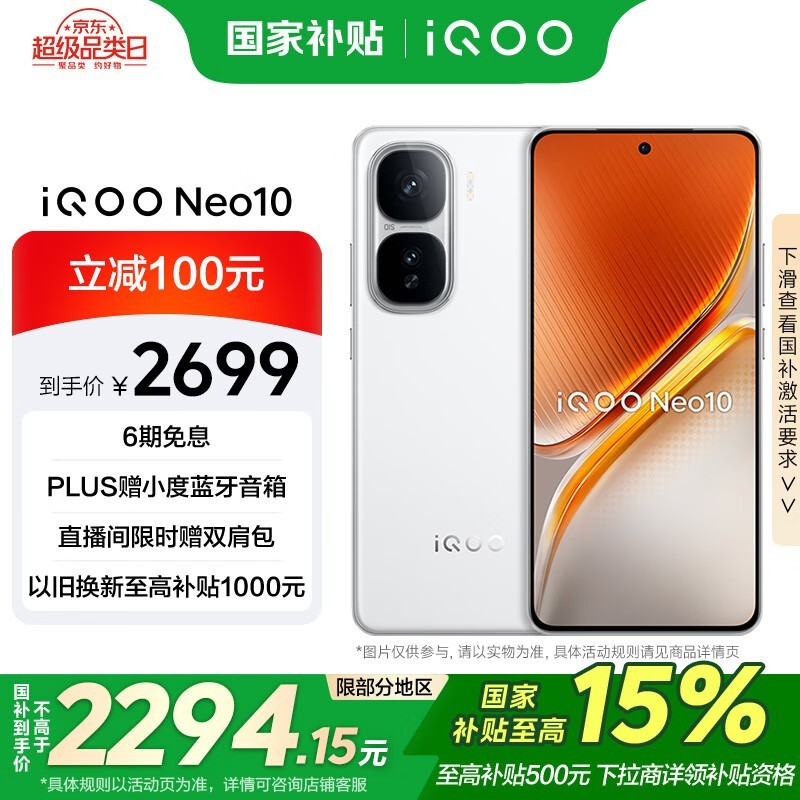 iQOO Neo10 512GB 驰光白 限时优惠低至2294元!