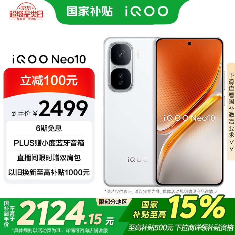 iQOO Neo10智能手机京东促销价2124元,搭载骁龙8 Gen3处理器