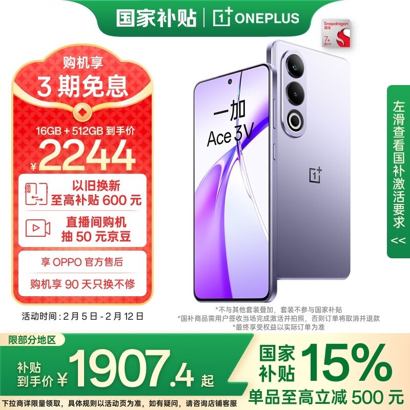 一加 OnePlus Ace 3V 手机仅售1896元!