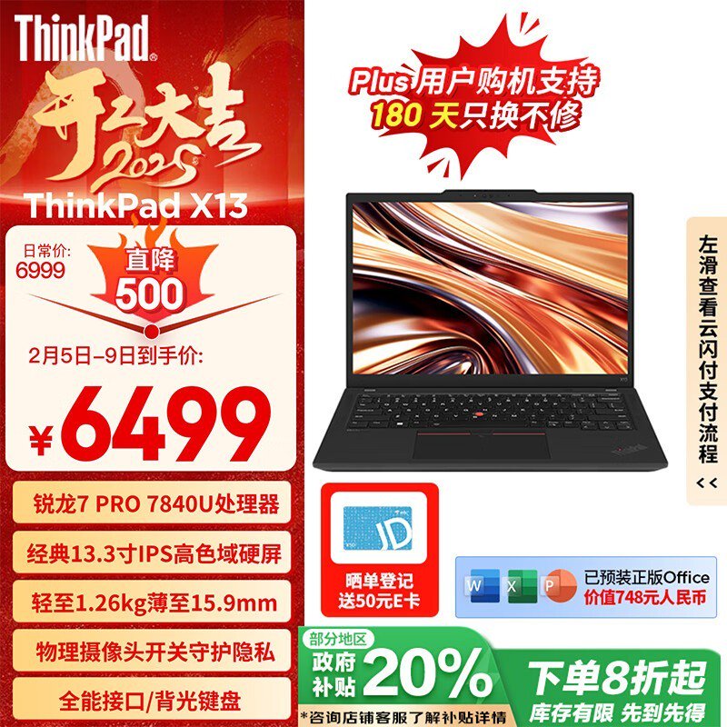 ThinkPad X13商务办公二合一的电脑仅售5173元