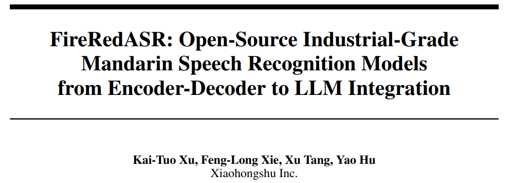 论文标题:FireRedASR: Open-Source Industrial-GradeMandarin Speech Recognition Modelsfrom Encoder-Decoder to LLM Integration