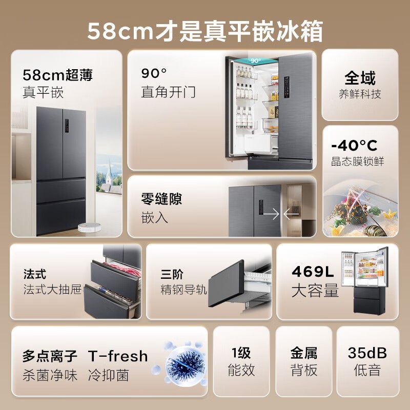 限时特惠!TCL R469T9-DQ 风冷超薄嵌入式冰箱到手价3007元