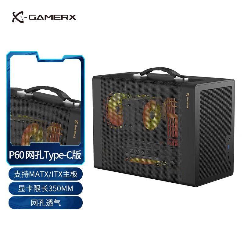 PowerTrain P60:轻巧MATX机箱,黑网设计Type-C接口,散热与便携的完美融合