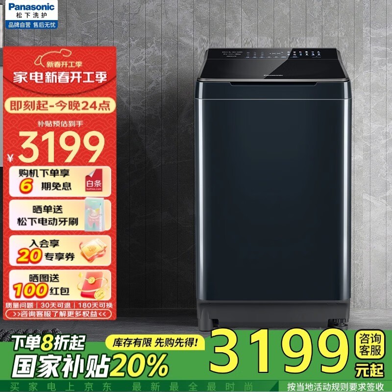 松下XQB100-U1F8:顶开门设计、变频直驱波轮洗衣机,3999元享高效洁净与空间节省生活神器