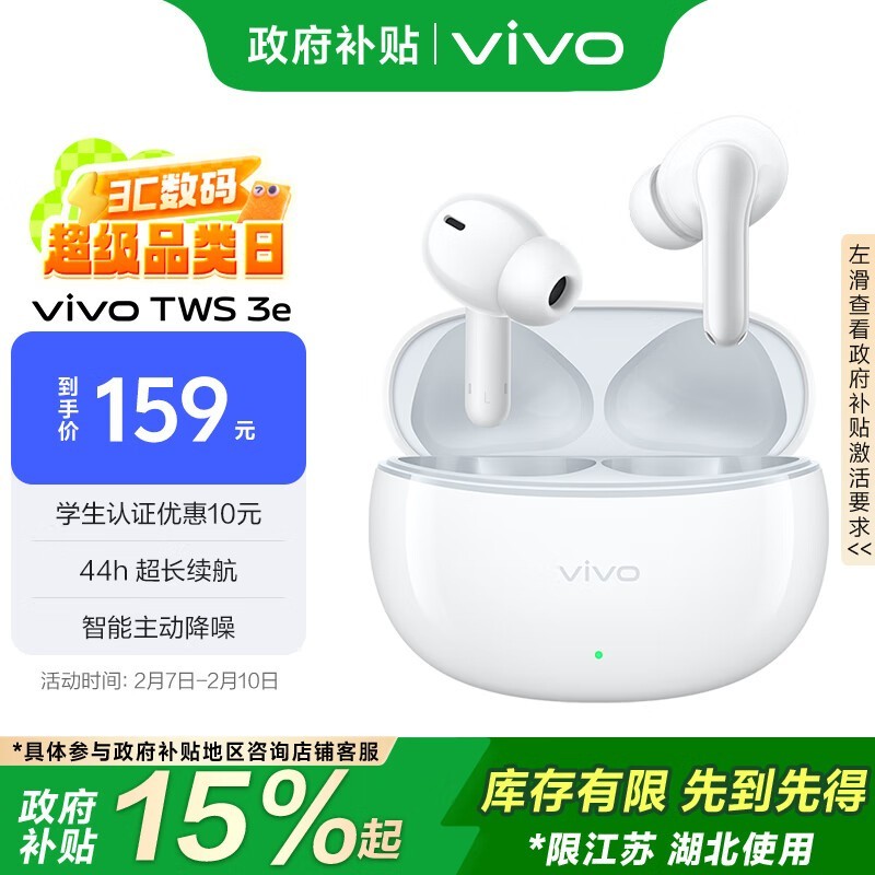 vivo TWS 3e 入耳式真无线主动降噪蓝牙耳机 原价159 到手仅需149