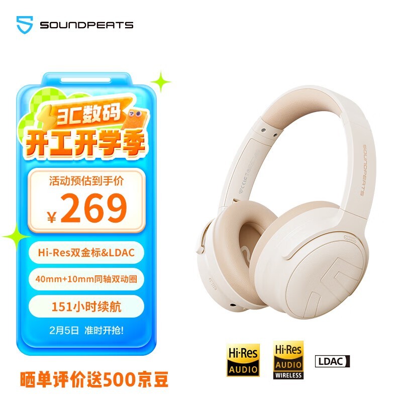 SoundPEATS Space Pro双金标头戴式降噪蓝牙耳机 247.66 到手价