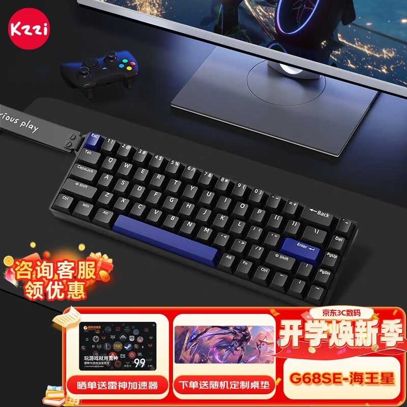 珂芝 KZZI G68 SE海王星有线机械键盘只要279元 14种灯光效果免费送