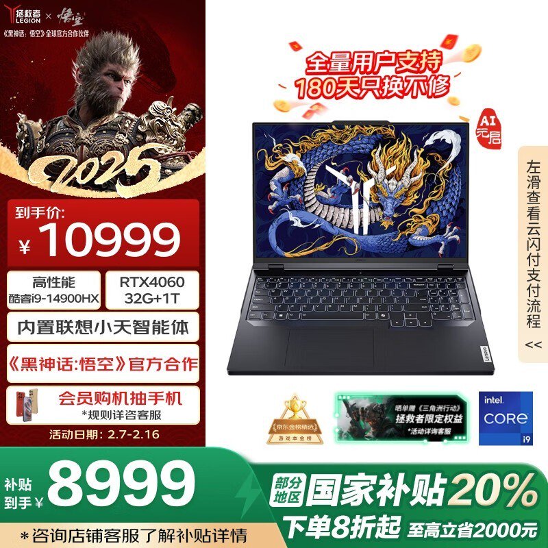 联想拯救者Y9000P游戏本限时8999元入手 14代i9+RTX4060独显