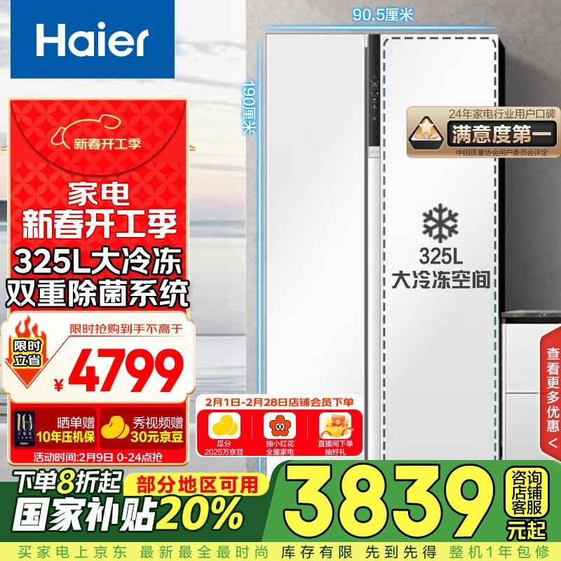 海尔 BCD-621WLHSS95W9U1 对开门冰箱 运行音37分贝 限时优惠4609元