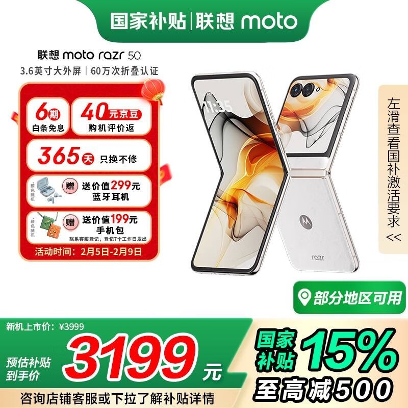 双重优惠 摩托罗拉Razr 50 5G折叠屏手机限时抢购价2849元