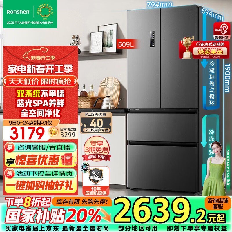 容声离子净味系列多门冰箱2280元 家庭必备