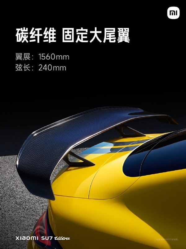 车身线条:车身线条流畅,采用了溜背式造型,搭配大尺寸轮毂和低扁平比轮胎,营造出强烈的运动氛围。车尾装备有碳纤维固定式大扰流板,并且尾部标识均进行黑化处理,右下角的“SU7 Ultra”标识表明身份信息。